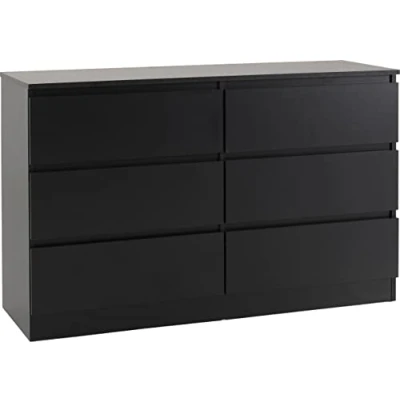 AmazonSeconique Malvern 6 Drawer Chest in Black W 1215mm x D 400mm x H 770mm Internal Drawer Space W525 D325 H110mm Top Thickness 15mm Drawer Front Size W600 H200mm Anti-tip Strap Included This product will be shipped in several packages;They may be delivered at different times