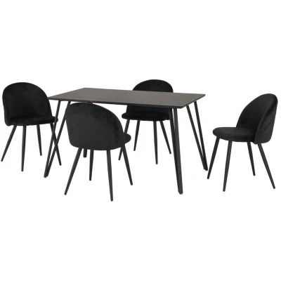 Seconique Marlow Dining Set with 4 Chairs in Black Marble/Black Velvet