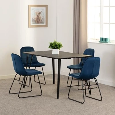 The Marlow & Lukas Dining Set with 4 Velvet Chairs and a Black Marble Effect table top brings an elegant and contemporary touch to your dining space. The bold black marble effect creates a striking focal point, while the four velvet chairs add a luxurious, plush feel, offering both style and comfort. The combination of the rich velvet upholstery and the sleek marble effect creates a sophisticated contrast that enhances any dining room. Ideal for both everyday use and special occasions, this set provides durability, comfort, and modern elegance in one beautiful package. Product Material: MDF Table Top/3D Plastic Veneer/Metal Legs/Metal Support Bar/Velvet Fabric/Foam/Plywood/Non-Woven Dimensions & Weight: Dimensions: L80 x W130 x H75.5 cm L54 x W43 x H81 cm Weight: 41 kg . Marlow & Lukas Dining Set (X4 Chairs) - Black Marble/Sapphire Blue Velvet . Delivery is free to UK Mainland, excluding AB31 to AB38, AB40 to AB56, IV, KA27 & KA28, KW, PA20 to PA78, PH4 to PH50 and ZE in Scotland; BT