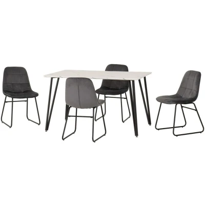 Seconique Marlow Dining Set with Lukas Chairs in White Marble Effect/Black/Grey Velvet