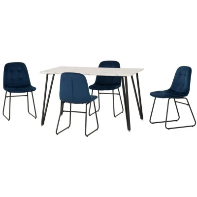 Seconique Marlow Dining Set with Lukas Chairs in White Marble Effect/Black/Sapphire Blue Velvet