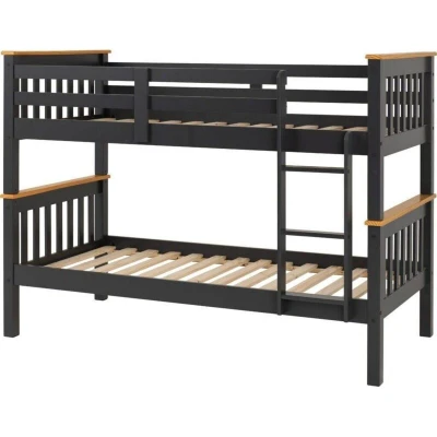 General description The Neptune 3 Feet Bunk Bed is a stylish and functional addition to any child's room. With its grey and oak effect finish, it combines modern aesthetics with practical design. Technical specifications Dimensions: L104 x W204.5 x H151 cm Weight: 67.14 kg Material: MDF with pine slats Pine ladder included Other information Note: Mattress not included.
