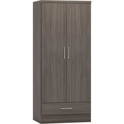 Seconique Nevada 2 Door 1 Drawer Wardrobe in Black Wood Grain