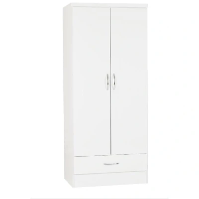 Seconique Nevada 2 Door 1 Drawer Wardrobe in White Gloss