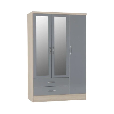 Seconique Nevada 3 Door 2 Drawer Wardrobe in Grey Gloss/Light Oak Effect Veneer