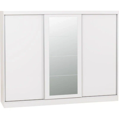 General description The Nevada 3 Door Sliding Wardrobe is a stylish and functional storage solution for any bedroom. With its sleek white gloss finish and modern design, it enhances the aesthetic of your space while providing ample storage. Technical specifications Dimensions: L62 x W242.5 x H194 cm Weight: 154.85 kg Frame material: Composite board Back panel: MDF Door details: Metal and plastic Hanging rail: Metal Feet: Plastic Mirrored glass included