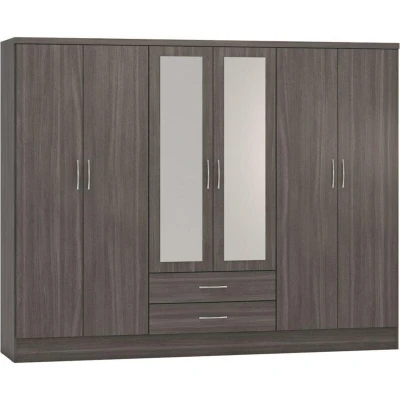 Seconique Nevada 6 Door 2 Drawer Wardrobe in Black Wood Grain