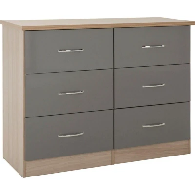 Seconique Nevada 6 Drawer Chest in Grey Gloss/Light Oak Effect Veneer