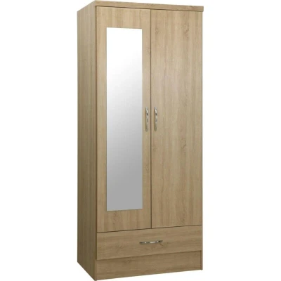 Seconique Nevada Mirrored 2 Door Wardrobe in Sonoma Oak Effect