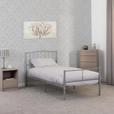 The Newton 3' Bed offers a simple and stylish design, perfect for smaller bedrooms or guest rooms. With a compact frame, this bed provides a comfortable and sturdy sleeping space while helping to maximize floor space. The clean lines and neutral finish allow it to complement various décor styles, making it a versatile choice for any home. Built for durability and support, the Newton 3' Bed combines practicality with a modern, understated look. Ideal for both adults and children, it offers a functional and cozy sleep solution. Product Material: Metal Dimensions & Weight: Dimensions: L202 x W96.5 x H94.5 cm Weight: 10 kg Note: Bed frame only, mattress not included. . Newton 3' Bed - Silver . Delivery is free to UK Mainland, excluding AB31 to AB38, AB40 to AB56, IV, KA27 & KA28, KW, PA20 to PA78, PH4 to PH50 and ZE in Scotland; BT for Northern Ireland; all postcodes within the Republic of Ireland where a surcharge will apply, please check before ordering.. 3#5