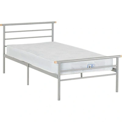 General description The Orion 3 Feet Bed Frame combines a sturdy metal construction with a stylish wooden headboard and footboard. This bed frame is designed to provide a reliable foundation for your mattress, ensuring a comfortable night's sleep. Technical specifications Dimensions: L197.5 x W105.5 x H84 cm Weight: 12.9 kg Material: Metal frame with wooden headboard and footboard tops Other information Note: Bed frame only, mattress not included.