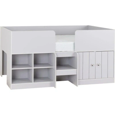 General description The Orlando Low Sleeper Bed is a stylish and functional addition to any bedroom, designed to provide a comfortable sleeping space while maximizing floor space. Its contemporary dove grey finish complements various decor styles. Technical specifications Dimensions: L104 x W196 x H98 cm Weight: 86 kg Max mattress thickness: 180 mm Max bed weight: 100 kg Materials: Composite board, plastic veneer, paper veneer, metal hinges, metal handles Other information Note: Mattress not included.