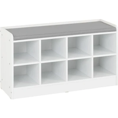 AmazonSeconique Portland Shoe Bench in White/Steel Fabric W 970mm x D 345mm x H 560mm Seat Pad Size W945 D330 H35mm Shelf Space W225 D340 H195mm COMPOSITE BOARD, FABRIC, FOAM, PLASTIC VENEER, PAPER VENEER, MDF BACK PANEL, PLASTIC FEET