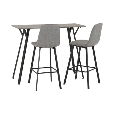 Seconique Quebec Bar Table Set with 2 Dining Chairs in Concrete Effect/Black/Grey/Faux Leather
