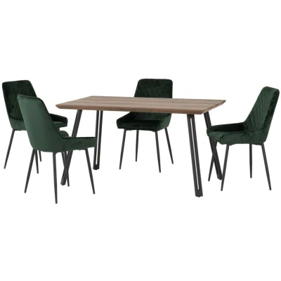 Seconique Quebec Straight Edge Dining Set with Avery Chairs in Medium Oak Effect/Black/Emerald Green Velvet