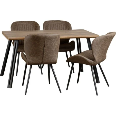 Seconique Quebec Wave Edge Dining Set with 4 Chairs in Medium Oak Effect/Brown Pu