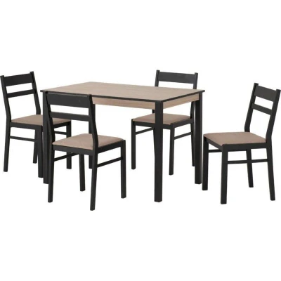Seconique Radley 1+4 Dining Set in Black/Oak Effect/Oat Fabric