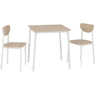 Introducing the Riley Small Dining Set, a perfect blend of style and functionality. This set features an elegant oak effect table top complemented by sleek white metal legs, creating a contemporary look that effortlessly complements any living space. The set comes complete with two matching chairs, ensuring a cohesive and stylish dining experience. Designed with convenience in mind, the Riley Small Dining Set is delivered in a flat pack, making assembly a breeze. Its space-saving design is ideal for those looking to maximize their living area without compromising on style. Upgrade your dining space with the modern simplicity of the Riley Small Dining Set today! Product Material: MDF/Metal/3D Plastic Veneer Dimensions & Weight: Dimensions: L70 x W71 x H75 cm L42 x W42 x H79 cm Weight: 18 kg . Riley Small Dining Set - White/Light Oak Effect Veneer . Delivery is free to UK Mainland, excluding AB31 to AB38, AB40 to AB56, IV, KA27 & KA28, KW, PA20 to PA78, PH4 to PH50 and ZE in Scotland;