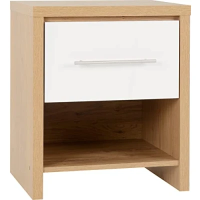 Seconique Seville 1 Drawer Bedside in White Gloss/Light Oak Effect Veneer