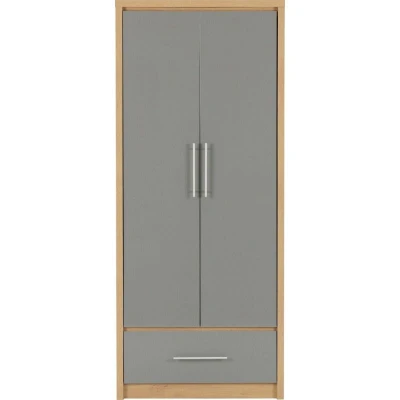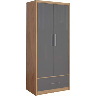 Seconique Seville 2 Door 1 Drawer Wardrobe in Grey Gloss/Light Oak Effect Veneer
