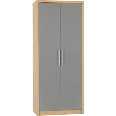 Seconique Seville 2 Door Wardrobe in Grey Gloss/Light Oak Effect Veneer