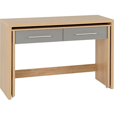 Seconique Seville 2 Drawer Slider Desk in Grey Gloss/Light Oak Effect Veneer