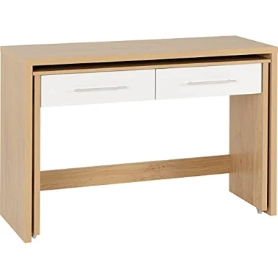 Seconique Seville 2 Drawer Slider Desk in White Gloss/Light Oak Effect Veneer