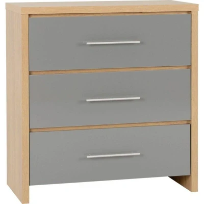 Seconique Seville 3 Drawer Chest in Grey Gloss/Light Oak Effect Veneer