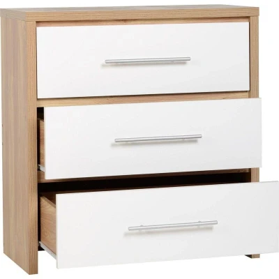 Seconique Seville 3 Drawer Chest in White Gloss/Light Oak Effect Veneer
