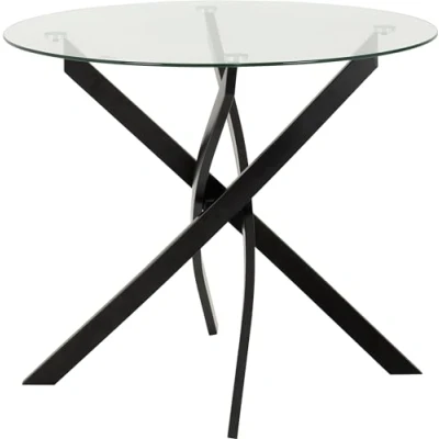 Seconique Sheldon Round Glass Top Dining Table in Clear Glass/Black