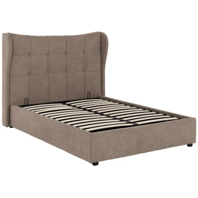 Seconique Verona 4'6" Double Ottoman Gas Lift Storage Bed in Brown Fabric