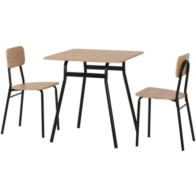 Perfect for smaller spaces, the WARREN 1+2 Dining Set combines industrial flair with everyday practicality. Featuring a square russet oak-effect table and two matching black chairs, this set is ideal for kitchen nooks, studio flats, or cosy dining corners. The warm woodgrain finish and sleek black metal legs create a modern look that suits a variety of interiors. Product Material: MDF/Metal/3D Plastic Veneer Dimensions & Weight: Dimensions: L70 x W70 x H74.5 cm L43.5 x W38 x H78 cm Weight: 17 kg . Warren 1+2 Dining Set - Russet Oak Effect/Black . Delivery is free to UK Mainland, excluding AB31 to AB38, AB40 to AB56, IV, KA27 & KA28, KW, PA20 to PA78, PH4 to PH50 and ZE in Scotland; BT for Northern Ireland; all postcodes within the Republic of Ireland where a surcharge will apply, please check before ordering.. 3#5