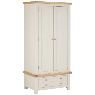 Seconique Windsor 2 Door 1 Drawer Wardrobe in Ivory/Oak