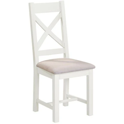 The Windsor Cross Back Dining Chair (x2 per box) in Ivory with Oat Fabric combines classic design with modern comfort. Featuring a timeless cross-back frame in a soft ivory finish, these chairs bring a fresh, country-inspired charm to any dining space. The padded seat is upholstered in a neutral oat-colored fabric, offering both style and comfort for everyday use. Crafted from sturdy materials, these chairs are built to last and pair beautifully with a range of dining tables, especially the Windsor range. Ideal for family meals or entertaining, this set of two adds warmth and elegance to any home. Product Material: Hardwood/Painted Finish (Matt)/Fabric/Foam Dimensions & Weight: Dimensions: L51 x W46 x H105.5 cm Weight: 18 kg . Windsor Cross Back Dining Chair (X2 Per Box) - Ivory/Oat Fabric . Delivery is free to UK Mainland, excluding AB31 to AB38, AB40 to AB56, IV, KA27 & KA28, KW, PA20 to PA78, PH4 to PH50 and ZE in Scotland; BT for Northern Ireland; all postcodes within the Republic