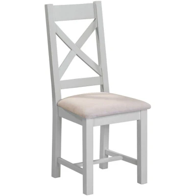 The Windsor Cross Back Dining Chair (x2 per box) in Pebble Grey with Oat Fabric offers a stylish blend of comfort and classic design. With a soft grey painted finish and a traditional cross-back frame, these chairs bring a fresh, elegant touch to any dining space. The cushioned seat is upholstered in a neutral oat fabric, providing both comfort and a versatile look that fits seamlessly into a variety of interiors. Crafted from sturdy materials for long-lasting use, this set of two chairs is perfect for everyday dining or entertaining guests. A great match for the Windsor dining tables. Product Material: Hardwood/Painted Finish (Matt)/Fabric/Foam Dimensions & Weight: Dimensions: L51 x W46 x H105.5 cm Weight: 18 kg . Windsor Cross Back Dining Chair (X2 Per Box) - Pebble Grey/Oat Fabric . Delivery is free to UK Mainland, excluding AB31 to AB38, AB40 to AB56, IV, KA27 & KA28, KW, PA20 to PA78, PH4 to PH50 and ZE in Scotland; BT for Northern Ireland; all postcodes within the Republic of