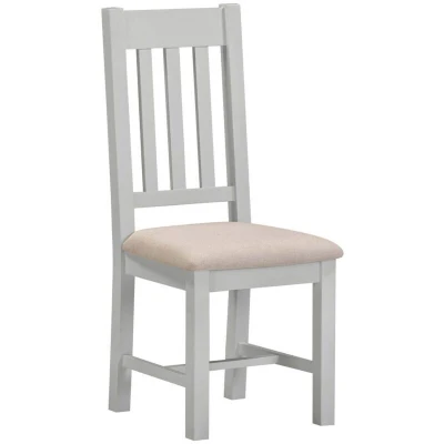 The Windsor Slatted Dining Chair comes in a set of two and features a pebble grey finish paired with soft oat-colored fabric upholstery. Its slatted back design adds a classic, airy look while providing good support. The chair frame is sturdy and built for everyday use, making it ideal for dining rooms or kitchens. The neutral color palette fits well with various decor styles, from modern to traditional. Comfortable fabric seats and durable construction ensure both style and practicality. This set is perfect for those looking to update their dining space with simple, elegant seating. Product Material: Hardwood/Painted Finish (Matt)/Fabric/Foam Dimensions & Weight: Dimensions: L41 x W46 x H105.5 cm Weight: 15 kg . Windsor Slatted Dining Chair (X2 Per Box) - Pebble Grey/Oat Fabric . Delivery is free to UK Mainland, excluding AB31 to AB38, AB40 to AB56, IV, KA27 & KA28, KW, PA20 to PA78, PH4 to PH50 and ZE in Scotland; BT for Northern Ireland; all postcodes within the Republic of Ireland