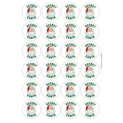 Secret Santa Christmas Circular Matt Paper Stickers A4 Sheet of 24 (Each Sticker is 45mm Diameter)