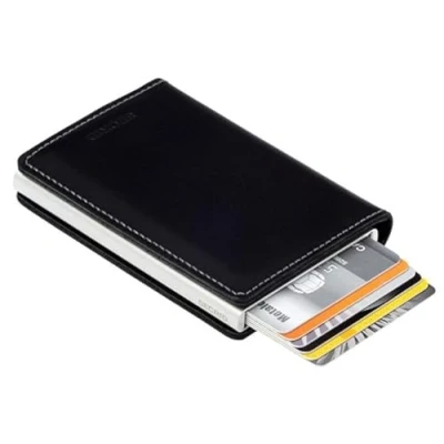 With its slim profile, the Secrid Slimwallet fits perfectly in any pocket. The casing is cut wider to hold cards, banknotes and receipts. This mini wallet can hold 4 thickened or 6 flat cards, 6 extra cards, Banknotes, receipts and business cards. The Cardprotector's mechanism allows cards to slide out with one simple movement, while the aluminium protects your cards from bending, breaking and unwanted wireless communication (RFID-safe).