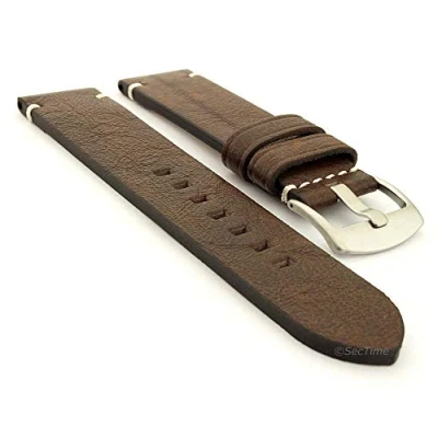 SecTime Genuine Leather Watch Strap Band Vintage Paris Brushed SS. Buckle Spring Bars (22mm, Dark Brown)