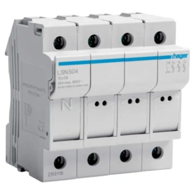 LSN504 FUSE HOLDER SECC.L38 3P+N 32A 4 MOD 690V Fuse Holder, Model No.: LSN504 Hager is synonymous with technological innovation, high-quality products and attractive design., Manufacturer: Hager