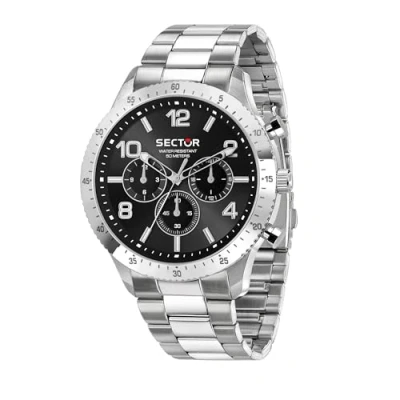 [Materials] Sector 270 Men's watch, made of steel, with steel bracelet and deployment buckle with pushers [Functions] Analogue watch with quartz movement and multi function [Features] The watch case measures 45 (case diameter) and is 12,5mm thick. The black sunray dial features MULTIFUNCTION UPMR INDEX WITH LUMINOUS and a mineral crystal [Water resistance] The watch is water resistant up to 5 ATM [Packaging] Sector Official presentation box and 2-years warranty