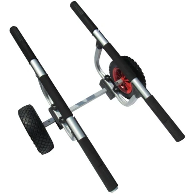 General description This Adjustable Aluminium Kayak Trolley is perfect for maneuvering your kayak or canoe while out of the water. Its adjustable design allows it to accommodate a wider range of kayak sizes. The 10" flat-free tires provide excellent grip on sandy or muddy tracks, making it ideal for navigating around locks or other obstacles. Technical specifications Length: 810 mm Overall Width: 645 mm Maximum Bar Width: 415 mm Minimum Bar Width: 215 mm Height: 405 mm Weight Capacity: 54 kg Compatibility and accessories Includes two tie-down straps to secure your kayak to the trolley.