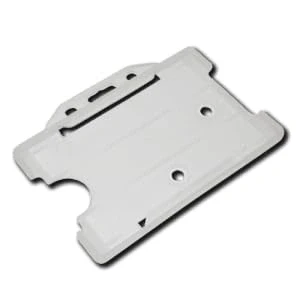Standard sized card holder, allowing use with ID, debit cards, proximity cards and more! Clear natural frosted open face ‘Bulldog’ single sided rigid biodegradable badge holder in landscape format. 100% BIODEGRADABLE – helping you to reduce your carbon footprint. Lightweight and attractive. This rigid plastic holder offers a high degree of protection