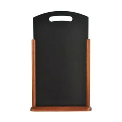 Double sided, double lacquered durable solid wood Suitable for indoor and outdoor use Synthetic non-porous surface for writing with liquid chalk markers Writing and Art work is resistant to smudging and light rain Wipe clean with wet soapy cloth and re-use