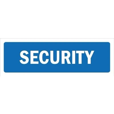 Security, blue. 1mm flexible Plastic sign. Digitally printed for extra durability. Drill and screw in position or use double sided tape to mount onto suitable surface. All signs come with a 5-year warranty. All our signs are UV resistant meaning they will not fade in sunlight. Suitable for indoor & outdoor use.