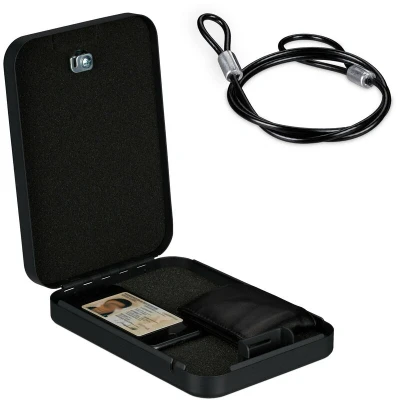 Security Box, Key Lock, Portable, Cable, Car Safe, h x w d: 5 17 25 cm, Steel, Black Relaxdays