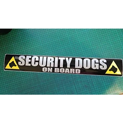 1 x Security dogs on board magnet 620x90mm , Silver text on a black background with 2 yellow dog heads All hand made to order so can be fully customised Very noticeable and very sharp looking High grade fully waterproof magnet Very Easy to read at distance, and easy to fit and remove for as and when you need it