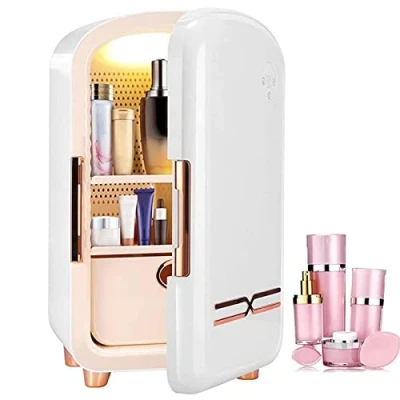 【High Quality】: High-quality mini refrigerator, the buckle design of cabinet body and door has good sealing performance, no gap, no water. Comprehensive antibacterial treatment can prevent bacterial growth and produce odors. You can store your cosmetics and others anywhere. 【Applications】: Professional beauty small refrigerator, used to store various high-end cosmetics and skin care products. Small items such as cosmetics, food, infant formula or medicines are easy to separate. It can hold skin care products, lipsticks, lotions, fragrances, creams, etc.! The lowest temperature can reach 8 degrees Celsius, ensuring that your cosmetics are fresh. 【12L large-capacity】: Beauty refrigerator, facial mask, skin care cosmetics, small refrigerator, large 12-liter volume. The interior is equipped with removable drawers, detachable shelves and shelves, which can store and organize various skin care products and cosmetics. 【Features】: Quiet/energy-saving design; there is no starting sound or vibration like a compressor, which can effectively cool down the temperature and run quietly and stably. Portable refrigerator only 36dB. This is a very soft voice. 【Energy Saving】: The dual-voltage mini beauty refrigerator adopts the most advanced thermoelectric structure. Once the temperature reaches 50ºF, the refrigerator will enter the energy-saving mode, saving money and energy with the least power.