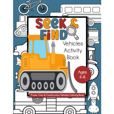 Seek and Find Vehicles Activity Book:: Trucks, Cars & Construction Coloring Book for Kids Ages 4 8
