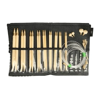 Interchangeable circular knitting needle Made of bamboo Strong and solid The material provides a smooth surface and sits comfortably in the hand The cables are made of nylon and offer flexibility and durability